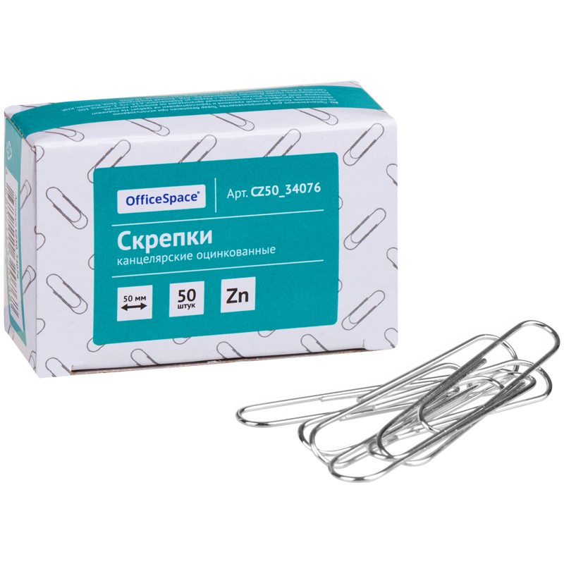 Скрепки 50мм. "OfficeSpace" 50шт. оцинкованные CZ50_34076