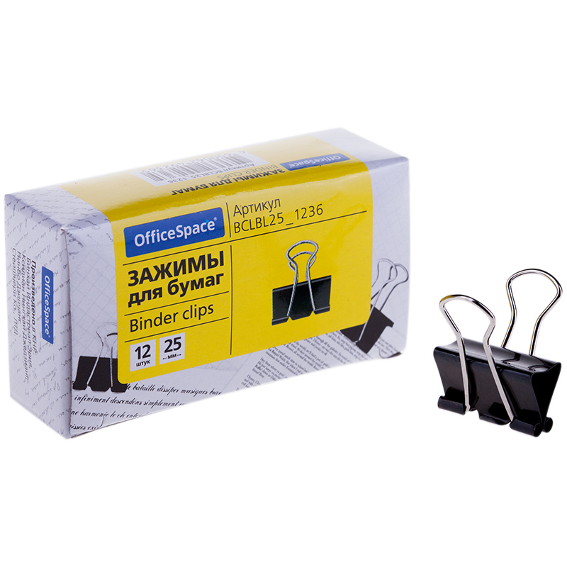 Зажимы д/бумаг 25мм "Спейс" черн. BCLBL25 12шт