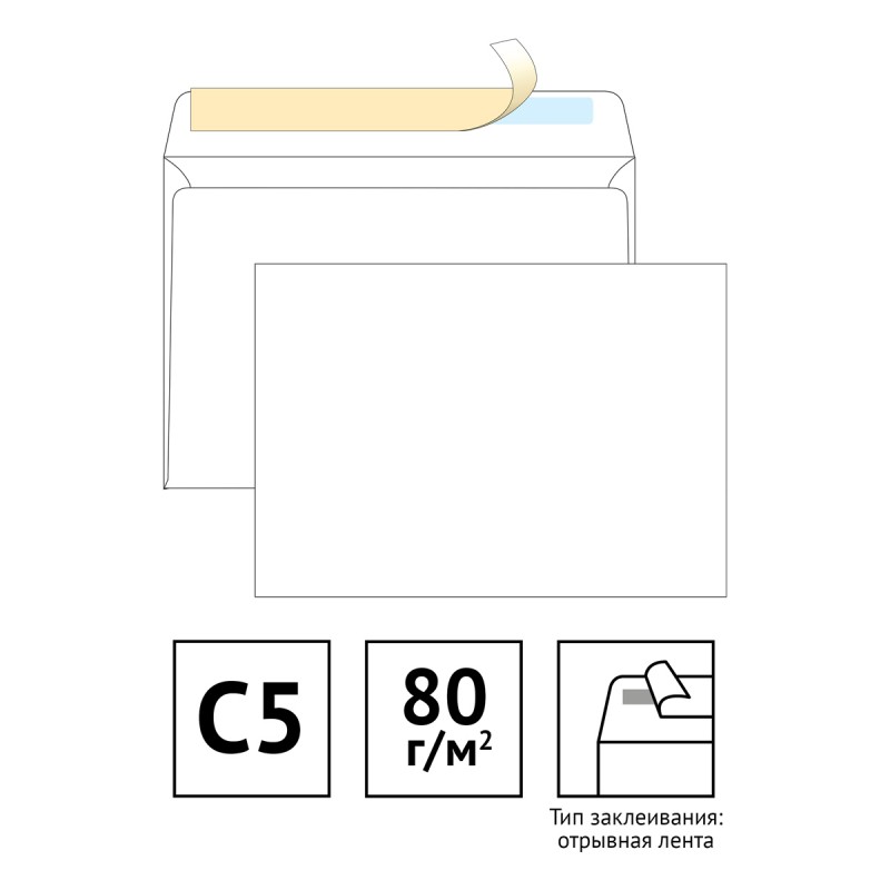 Конверт С5 "Белый" отрывная лента 162х229мм