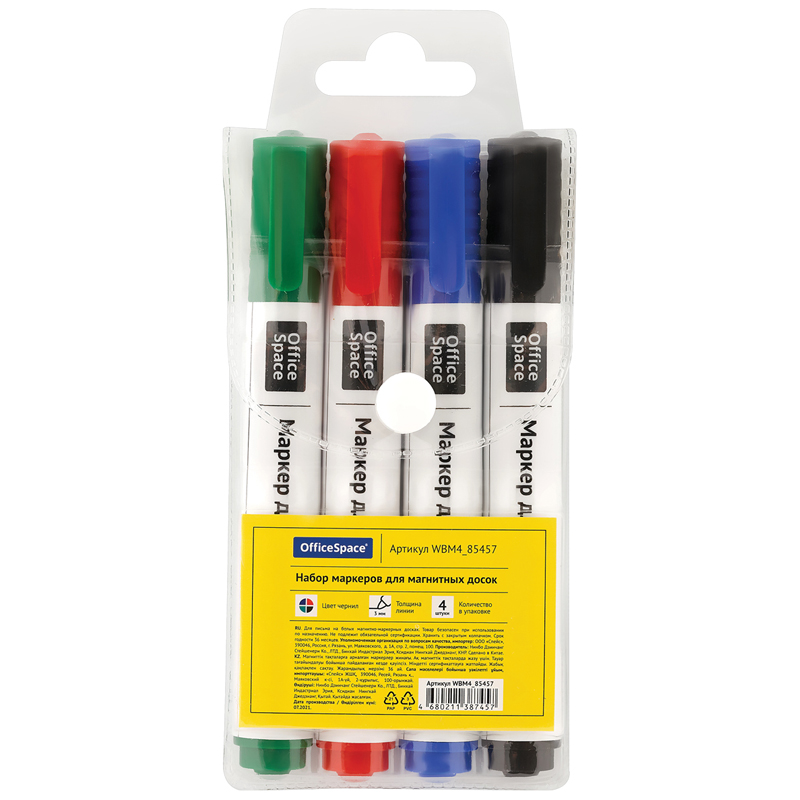 Набор маркеров для белой доски 4цв. "OfficeSpace"