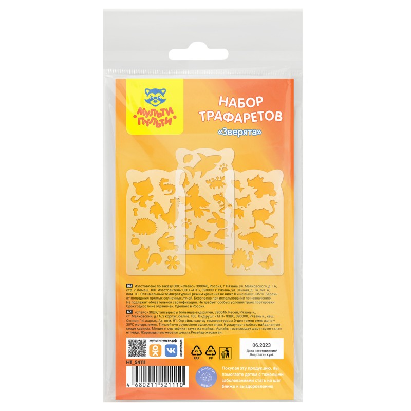Набор трафаретов 3шт. Мульти-пульти Зверята НТ 54111