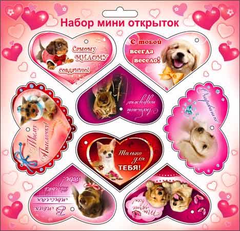 открытка Валентинка мини 8 шт набор